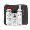 Kit Limpieza y Mantenimiento Moser Set Blade Care que contiene: Aceite Lubricante 200ml: Para una lubricación profesional de las cuchilla ,un engrasado óptimo, se ocupa de alargar la vida útil de las piezas, fórmula que no daña la piel, recomendado su uso regular. Spray Desinfectante 250ml: para el mantenimiento del cabezal de corte de las maquinas cortapelos y esquiladoras. Spray Refrigerante y limpiador 400ml: mantiene todos los juegos de corte limpios e higiénicos resistente a virus y bacterias. Neceser negro Moser. Cepillo limpiador. Paño de limpieza. Recomendaciones de limpieza.