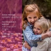 Hidrata y protege el cabello de los más pequeños (a partir de 3 años). Facilita el peinado eliminando nudos y enredos sin tirones.