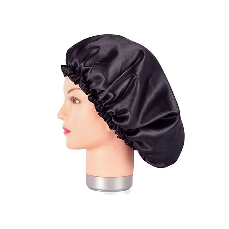 Gorro para dormir fabricado en saten que contribuye a proteger la salud y el estilo del cabello, ya que evita la fricción, la ruptura y el encrespamiento causado por las almohadas a la hora de dormir. Su tamaño es ideal para recoger todo tipo de melenas y su gomilla especial no aprieta.