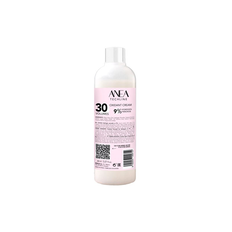 Oxidante en crema de Techline, de 30Vol. Consigue una textura adecuada para cada trabajo de coloración y decoloración. Emulsión de agua oxigenada estabilizada y formulada especialmente para proteger el cabello.