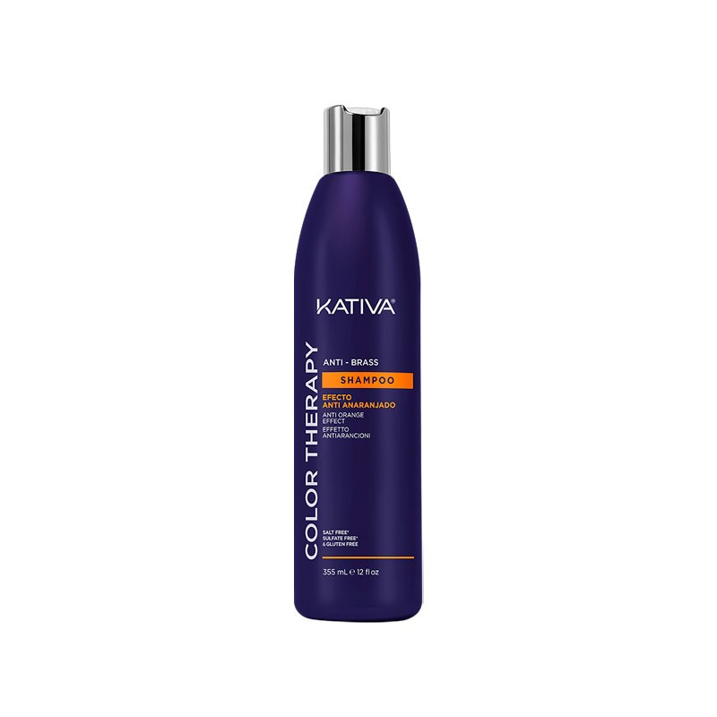El Champú Kativa Color Therapy Efecto Anti Anaranjado 335ml es un champú matizador especialmente formulado para neutralizar los reflejos anaranjados no deseados en cabellos teñidos, decolorados o expuestos a factores externos.