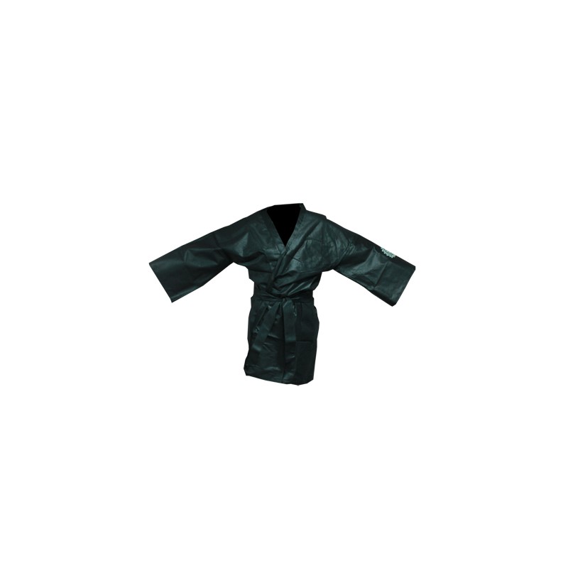Bata negra de un solo uso aunque es posible reutilizarlo al menos 10 veces. Está fabricada en SPP 50 gr, composición 100% polipropileno.