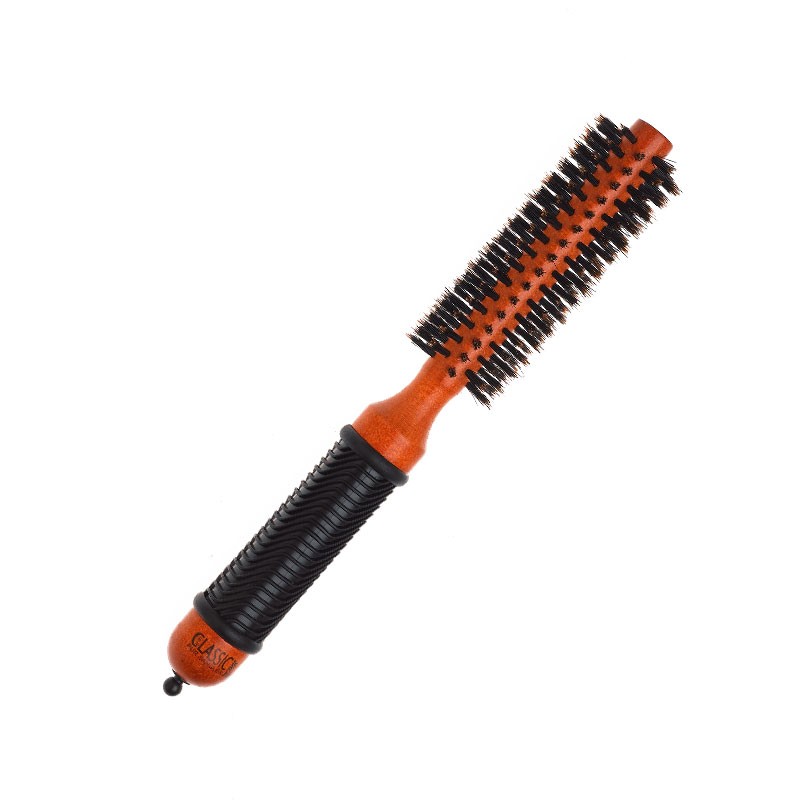 Cepillo redondo de madera, con cerdas de jabalí de primera calidad. Los cepillos están diseñados para brindar una experiencia de peinado profesional y son ideales para salones de belleza, estilistas y peluqueros domésticos. Los cepillos vienen en una práctica caja de almacenamiento para facilitar el transporte. El cepillo CLASSIC 33 es ideal para peinar cabellos de todas las longitudes y texturas. Las cerdas de jabalí son suaves y suaves, lo que ayuda a desenredar el cabello mientras agrega brillo y volumen.