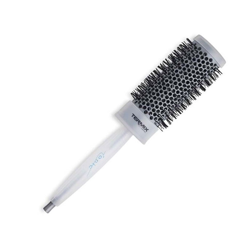 Cepillo de pelo Termix C·Ramic con tecnología iónica. Combina la tecnología cerámica e iónica para aportar máximo brillo al cabello, realizar peinados duraderos, sin roturas, daños y signos de encrespamiento. Con fibras de alto rendimiento que resisten el calor y tienen mayor capacidad de recuperación evitando que se deformen con el uso.