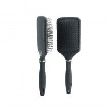 Cepillo para cualquier tipo de cabello incluso para gran volumen, y se adapta a todo tipo de cabello, fino, medio o grueso, rizado o liso, especialmente para cabello húmedo. Destaca por sus púas de nylon antiestático con bola en la punta de una dureza muy acertada que al mismo tiempo que cepilla, masajea el cuero cabelludo estimulando el crecimiento del cabello. Al penetrar hasta el cuero cabelludo, lo estimula y gracias a su flexibilidad, desenreda el cabello sin tirones y sin romper el cabello. Gracias a esa gran capacidad, lo hace ideal para cepillar cabellos mojados y para la aplicación de tratamientos en el cabello, donde se necesite repartir uniformemente el producto desde raíz hasta las puntas. Por otro lado, el mango de estructura cilíndrica es ergonómico e incorpora un práctico pin plegable para seccionar el cabello antes del cepillado.