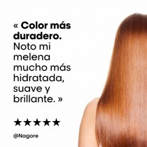Después del champú, el siguiente paso del protocolo es aplicar la MASCARILLA LOREAL EXPERT VITAMINO COLOR 500ML, que ayuda a sellar la fibra y potenciar la protección del color y la luminosidad.