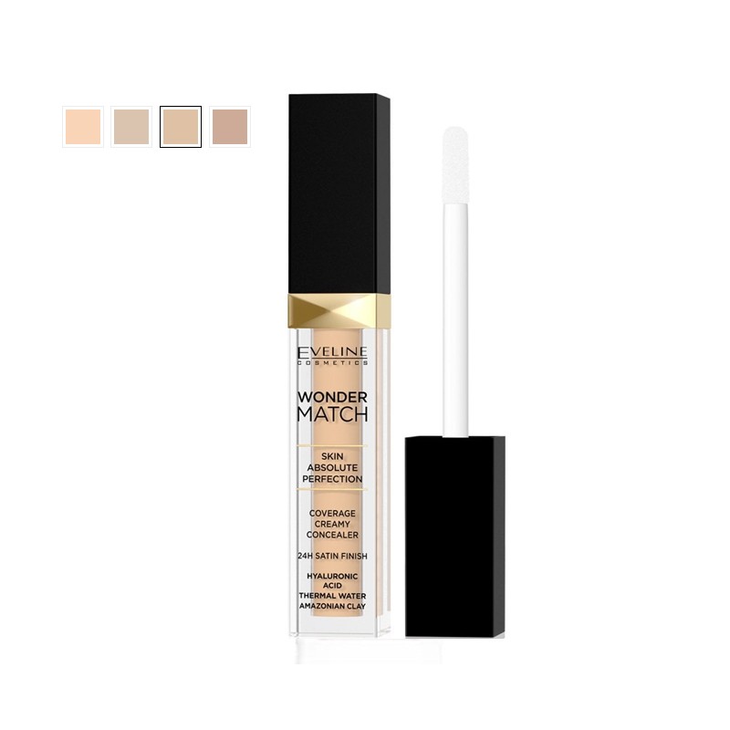 El corrector Wonder Match es una combinación perfecta de cuidado y efecto embellecedor. La fórmula cosmética, que contiene ácido hialurónico, agua termal y arcilla amazónica, deja la piel agradablemente suave e hidratada. La fórmula agradablemente ligera no solo ocultará las imperfecciones e igualará el color, sino que también hidratará la piel. Propuesta única para clientes exigentes. Los maravillosos ingredientes también tienen propiedades antienvejecimiento. La fórmula ligera que apenas se siente en la piel disimulará perfectamente las ojeras, igualará el color y disimulará las imperfecciones. El corrector está diseñado para que la piel luzca rejuvenecida, radiante y fresca. El cosmético está disponible en cuatro colores, apropiadamente combinados con las bases de la línea Wonder Match.