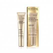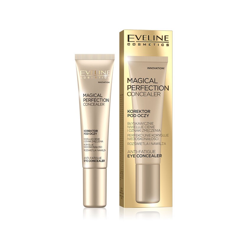 El corrector de ojeras MAGICAL PERFECTION cubre perfectamente todas las imperfecciones, proporciona el efecto de rejuvenecimiento, ilumina y enmascara los signos de fatiga. La fórmula exclusiva contiene ácido hialurónico, péptidos, vitamina E y extracto de té verde Matcha, conocido por sus propiedades rejuvenecedoras. El pepino y la eufrasia iluminan la piel debajo de los ojos y reducen el hinchazón. La adición de algas azules hidrata y calma las irritaciones y las partículas de mica natural reflejan la luz dando un efecto sutil de iluminar el aspecto y reducir ópticamente las arrugas. El corrector está disponible en dos versiones de color: Light y Medium.