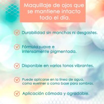 - Versátil: puede aplicarse como eyeliner o como base para sombras.