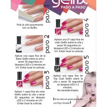 MODO DE USO: Agitar antes de usar, aplicar una fina capa de base, secar en la lámpara. Aplicar una capa fina de esmalte. Secar 2 min en lámpara UV o 30 sec en lámpara LED. Repetir con la segunda capa. Aplicar el top coat y secar en lámpara.