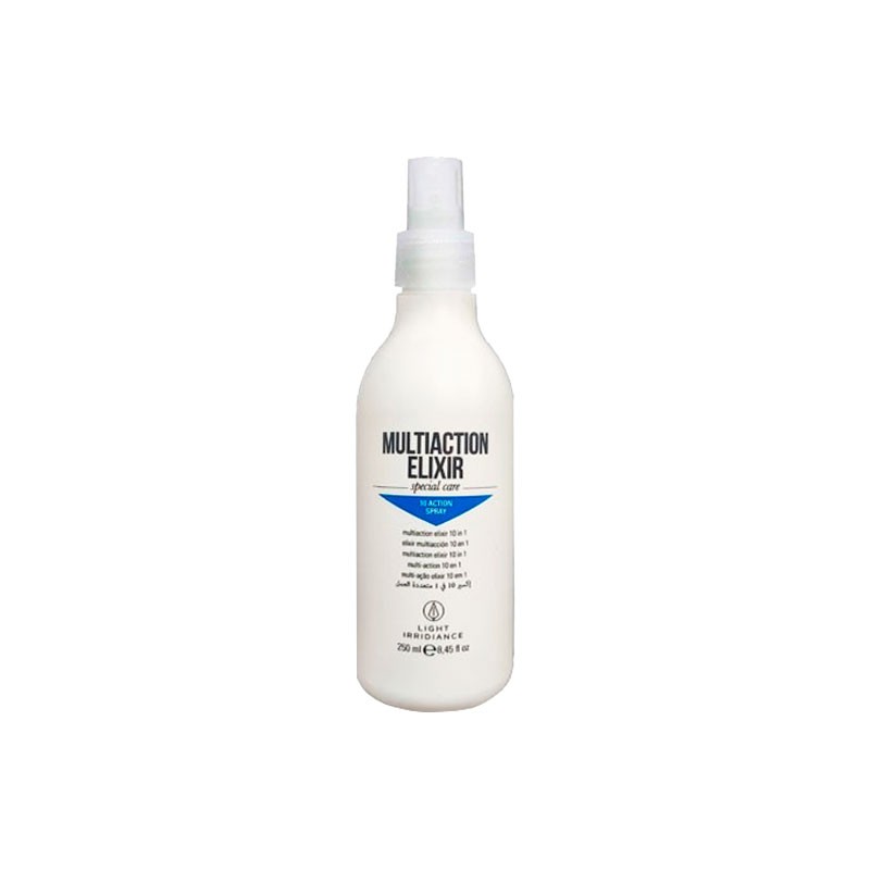 Mascarilla en spray sin enjuague para todo tipo de cabello con 10 acciones: nutre el cabello en profundidad, antiencrespamiento y desenredante, protege del calor del secador o plancha, efecto brillo, voluminizante, antienvejecimiento, reforzante, previene las puntas abiertas. Modo de empleo: aplicar con las manos sobre cabello húmedo o seco y peinar.