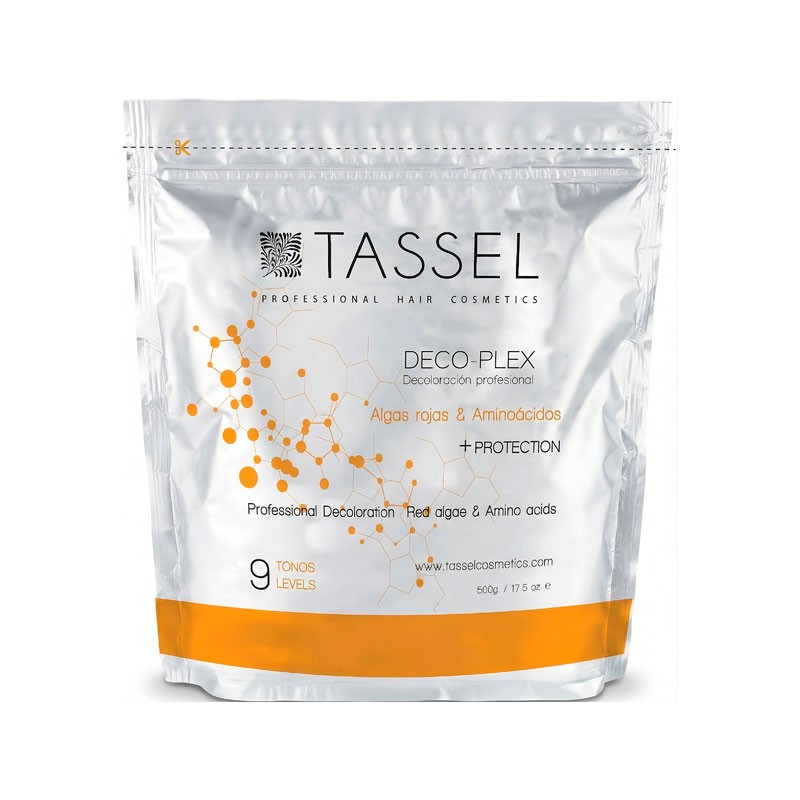 La Decoloración Deco-Plex Tassel 500gr es un polvo decolorante profesional con tecnología Plex diseñado para conseguir una aclaración de hasta 8-9 tonos con mayor protección de la fibra capilar.