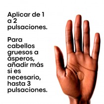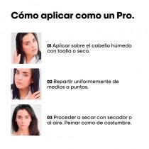 Aplicar una pequeña cantidad sobre cabello húmedo o seco. No aclarar. Distribuir de medios a puntas.