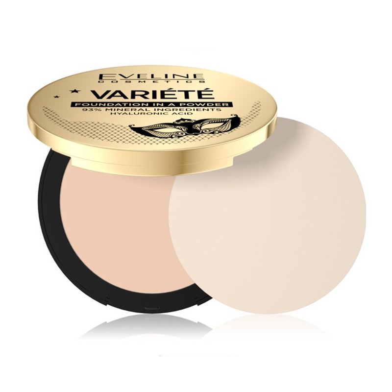 Eveline Cosmetics Variete Mineral Compact Face Powder es un producto cosmético decorativo que combina las propiedades colorantes de una crema y el efecto matificante de un polvo. Enmascara eficazmente las pequeñas imperfecciones, unifica el tono de la piel y le proporciona un delicioso aspecto aterciopelado. Características de Variete Mineral Ingredients Powder de Eveline Cosmetics: - Hecho sobre una base mineral - Gracias a su sedosa textura, se distribuye uniformemente y se extiende sobre la piel como un velo fino; - Enmascara eficazmente las imperfecciones menores y unifica la piel - Brinda un acabado mate - No crea efecto máscara y no obstruye los poros - Contiene ácido hialurónico e hidrata intensamente la epidermis - Satura la piel con minerales útiles.