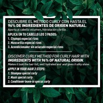 Champú método curly girl, especial cabellos rizados. Para conseguir unos rizos definidos de manera natural, hemos desarrollado este champú para los cabellos más rizados, basado en el método Curly: que proporciona y mantiene la máxima hidratación posible para que este tipo de cabello pierda el frizz propio y esté más natural. La fórmula ha sido enriquecida con un activo natural derivado del maíz, que aporta al cabello rizado la hidratación extra que necesita, controlando el encrespamiento y definiendo el rizo. Y para que el tratamiento sea mucho más efectivo, se recomienda utilizar toda la línea: champú especial rizos, mascarilla especial rizos y acondicionador especial rizos sin aclarado. Los productos de esta gama se caracterizan por no contener sulfatos, siliconas, parabenos, ceras, aceites minerales y alcoholes secantes. Todos ellos, ingredientes prohibidos en el método curly. Pero si contiene otros ingredientes beneficiosos para el cabello rizado como es el Activo 100% natural derivado del maíz, que mejora la retención del rizo, controla el encrespamiento y mejora la resistencia a la humedad. El Phytokeratin, que es un extracto compuesto por aminoácidos libres de origen vegetal (maíz, trigo y soja), que aumenta los aminoácidos libres presentes en el cabello, que juegan un papel muy importante, ya que ayuda a mantenerlo húmedo y flexible. Además proporciona brillo y vitalidad al cabello. Y por si fuera poco, este nuevo champú especial rizos, contiene una mezcla elixir de aceites y mantecas: manteca de coco y mango y aceite de oliva, almendra, aguacate, soja y algodón. Esta combinación facilita el peinado, y mejora la suavidad del cabello, protege su estructura, mejora la resistencia y fuerza del mismo, y reduce y controla el volumen evitando el encrespamiento Estos productos los pueden utilizar también los niños ya que ayudan a definir el rizo natural, sin modificar la estructura del cabello.
