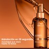 Además de nutrir intensamente, este aceite capilar protege contra el calor de herramientas térmicas de hasta 230°C y la exposición a los rayos UV, reduciendo el encrespamiento por 96 horas, incluso en ambientes con 80% de humedad. Su fragancia floral con notas de jazmín, vainilla, bergamota, melocotón y sándalo convierte cada aplicación en una experiencia sensorial única.