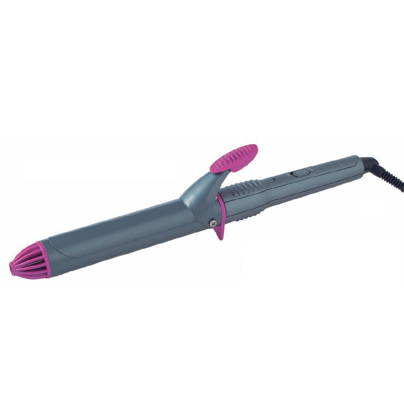 Tenacilla recubierta de material de cerámica para evitar la rotura del cabello. Con cable de 360º y controlador de temperatura. Para ondular o rizar el cabello.