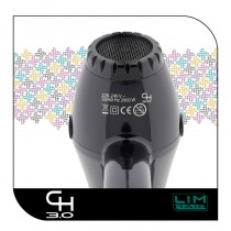 Secador profesional Lim modelo CH 3.0. Fabricado con motor profesional AC 1000h. Con 2000W de potencia. Diseñado con material anti-impactos. Mango e interruptores anatómicos que permite una gran manejabilidad. Filtro metálico de fácil limpieza. 2.5 metros de cable.