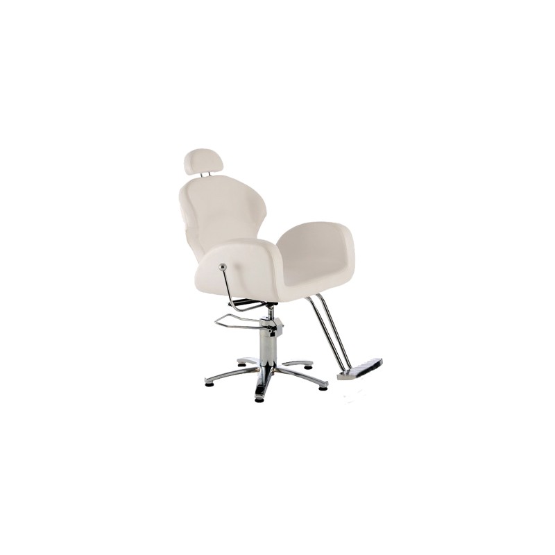 Tapicería color blanco, base estrella hidraúlica con freno , respaldo reclinable y cabecero ajustable.