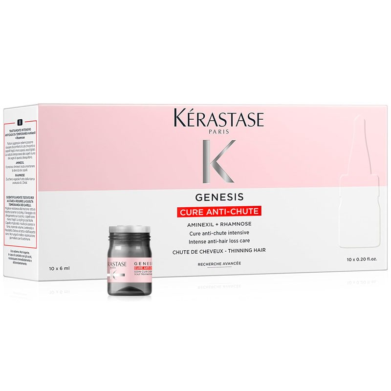 Las Ampollas Kérastase Anticaída Génesis Cure Anti-Chute son una solución profesional y eficaz para frenar la caída, fortalecer el cabello desde la raíz y devolverle su vitalidad natural.