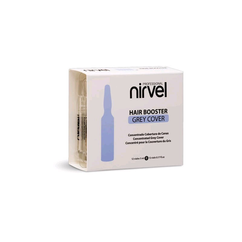 Ampolla Nirvel hair booster grey cover es un tratamiento capilar concentrado ideal para mejorar la fijación y absorción de los pigmentos durante el proceso de coloración. Su fórmula avanzada garantiza una cobertura superior de las canas, asegurando un color más intenso, uniforme y duradero.