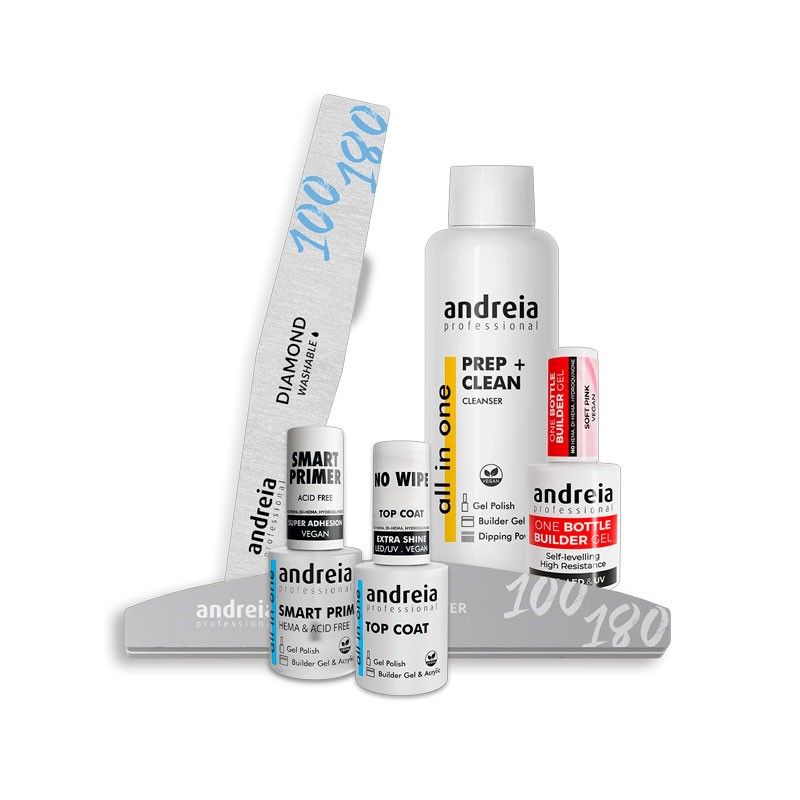 El Kit Construcción Gel One Bottle Builder Gel Andreia es un kit de gel constructor para uñas diseñado para realizar manicuras profesionales con acabado resistente, natural y duradero. Este kit uñas de gel constructor completo profesional incluye todos los productos esenciales para la preparación, construcción y acabado de uñas de gel utilizando la línea One Bottle Builder Gel de Andreia Professional.