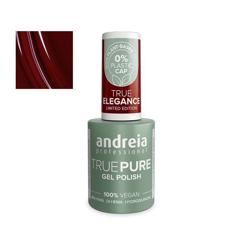 Pertenece a la gama Andreia Professional True Pure, diseñada para ofrecer un esmalte semipermanente sin tóxicos, sin HEMA, Di-HEMA ni hidroquinona, siendo una opción segura para uñas y pieles sensibles. Su fórmula vegana, sin olor ni solventes, garantiza una experiencia más suave, respetuosa y duradera.