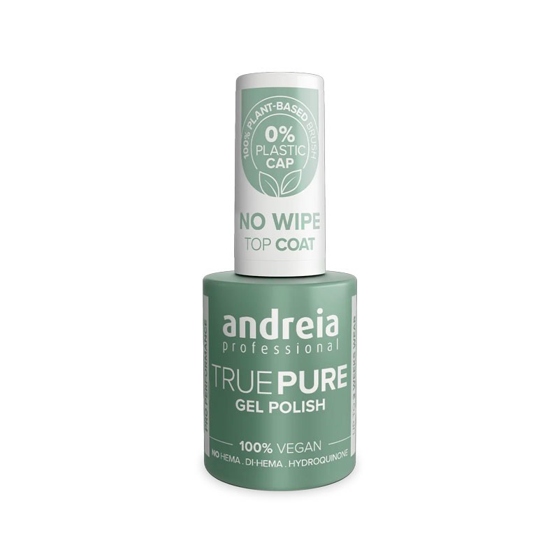 El True Pure No Wipe Top Coat es un top coat semipermanente vegano sin capa de dispersión, formulado sin HEMA, Di-HEMA ni hidroquinona. Diseñado para uñas y pieles sensibles, ofrece un acabado brillante, duradero y sin necesidad de limpiar con alcohol después de la catalización. Compatible con lámparas LED y UV, garantiza hasta 3 semanas de duración en la uña con una protección óptima para tus colores True Pure.