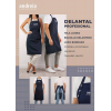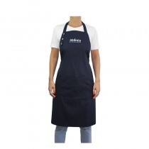 Delantal unisex azul noche, de tela ligera, fresco y cómodo con diseño simple y elegante, con bolsillo delantero y logotipo blanco bordado. Talla única, con tirante ajustable y botones a presión plateados. 35 % algodón, 65 % poliéster. Lavar a una temperatura máx. de 40 grados. Planchar máx. 100 grados. No usar lejía. No usar secadora. Cuida el medioambiente. Lavar la ropa a temperaturas bajas y con programas de centrifugado suaves reduce el consumo de energía.